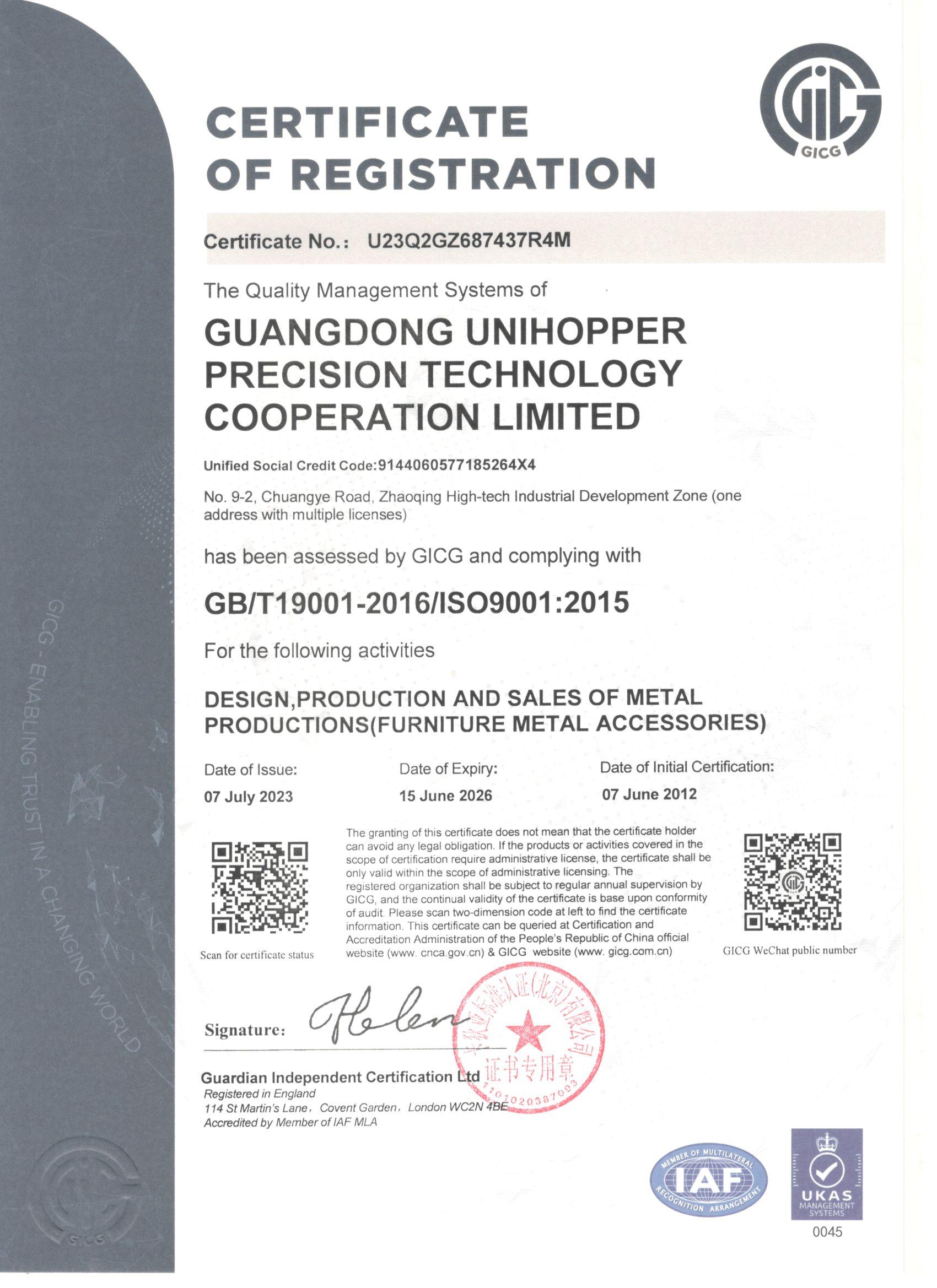 Качество продукции UNIHOPPER подтверждено ведущими мировыми стандартами, такими как TUV Reinland LGA Products (Германия). Вся линейка компонентов проходит строгий контроль качества и соответствия требованиям европейских стандартов, что позволяет успешно конкурировать на мировых рынках. Именно поэтому производители мебели выбирают именно этот бренд для воплощения своих лучших проектов.