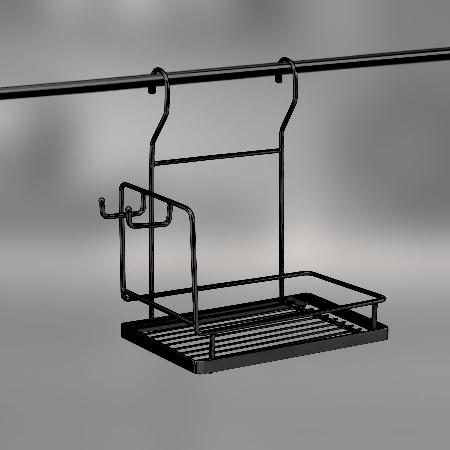 Навесная полка на рейлинг с боковыми крючками - полезный и универсальный аксессуар для кухни. Полка для специй - находка для тех, кто устал от беспорядка на кухне. Для того, чтобы освежить и добавить изюминку в интерьер кухни иногда достаточно правильно организовать систему хранения. Навесная полка поможет рационально использовать пространство на стене и освободить рабочую поверхность. Этот универсальный органайзер отлично подойдет для моющих средств, так же вы можете хранить на нем свою коллекцию специй, кроме того, держатель оборудован удобными крючками, на которые можно повесить прихватки, кухонные приборы или электротехнику: миксер, блендер. Навесная полка станет отличным помощником хозяйке в организации хранения кухонных принадлежностей.