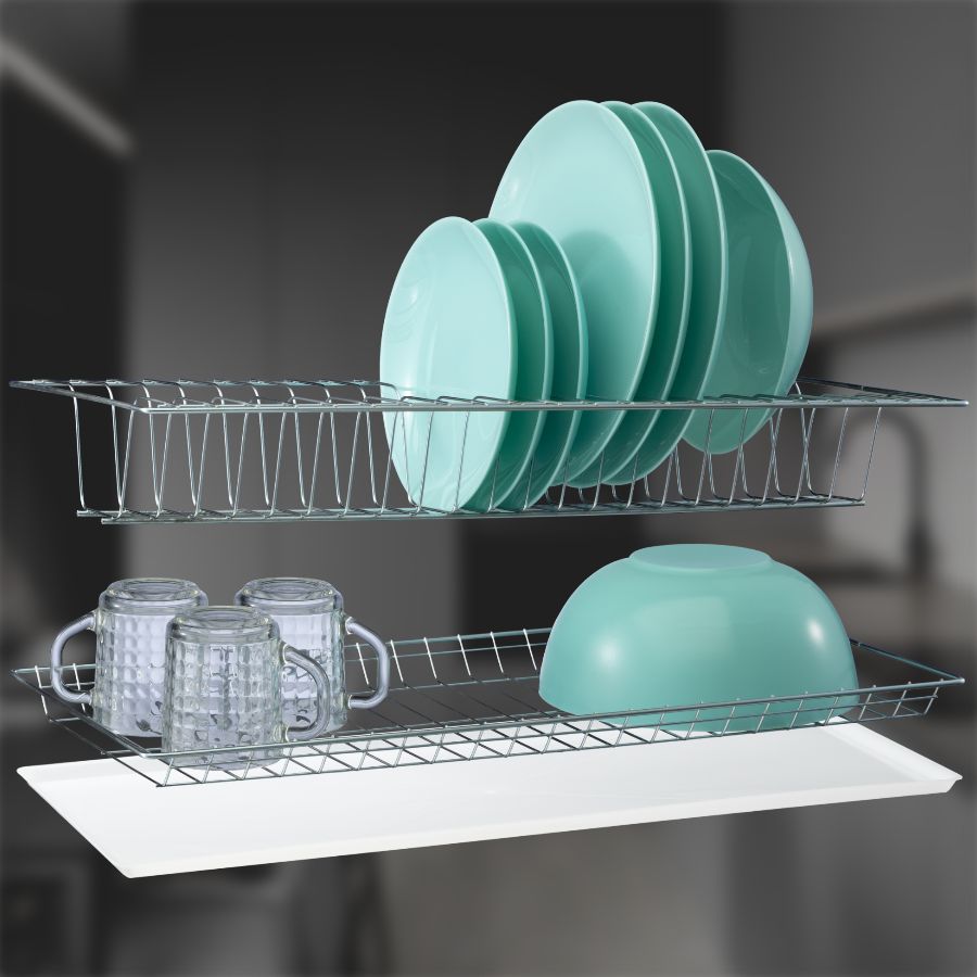 Сушилка для посуды с поддоном представляет собой практичное и удобное устройство для хранения вымытой посуды. Она встраивается в верхний шкаф размером и имеет двухъярусную конструкцию, позволяющую устанавливать тарелки ребром для быстрого стекания воды и сушки. Сушилка легко монтируется, устойчива к влаге благодаря специальной обработке металла и покраске, выдерживает нагрузку до 7 кг на уровень и оснащена поддоном для сбора воды. Это надежное и функциональное решение для кухни.