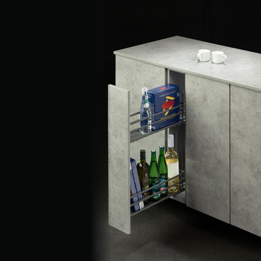 Бутылочница – это высококачественная и функциональная комплектующая для кухонного гарнитура. Предназначена для хранения бутылок и других предметов в кухонных шкафах. Она имеет два уровня, что позволяет эффективно использовать пространство внутри шкафа. Держатель для бутылок оснащен направляющими полного выдвижения с доводчиком, которые обеспечивают плавное выдвижение и закрывание ящика. Это удобно при использовании и позволяет легко доставать и убирать предметы, а так же позволяет избежать случайного удара и повреждения посуды. Выдвижная корзина выполнена из прочного материала, который обеспечивает ее долговечность и надежность. Она имеет боковое крепление и легко монтируется на левую стенку шкафа. Держатель для бутылок имеет возможность 3D-регулировки - широкий диапазон регулировки положения фасада, без использования инструментов, которое позволяет избежать щелей и перекосов. Бутылочница - отличное решение для организации пространства в шкафах и удобного хранения бутылок и других предметов.