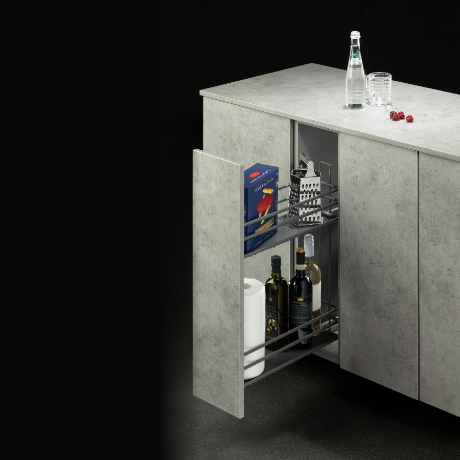 Бутылочница – это высококачественная и функциональная комплектующая для кухонного гарнитура. Предназначена для хранения бутылок и других предметов в кухонных шкафах. Она имеет два уровня, что позволяет эффективно использовать пространство внутри шкафа. Держатель для бутылок оснащен направляющими полного выдвижения с доводчиком, которые обеспечивают плавное выдвижение и закрывание ящика. Это удобно при использовании и позволяет легко доставать и убирать предметы, а так же позволяет избежать случайного удара и повреждения посуды. Выдвижная корзина выполнена из прочного материала, который обеспечивает ее долговечность и надежность. Она имеет боковое крепление и легко монтируется на левую стенку шкафа. Держатель для бутылок имеет возможность 3D-регулировки - широкий диапазон регулировки положения фасада, без использования инструментов, которое позволяет избежать щелей и перекосов. Бутылочница - отличное решение для организации пространства в шкафах и удобного хранения бутылок и других предметов.