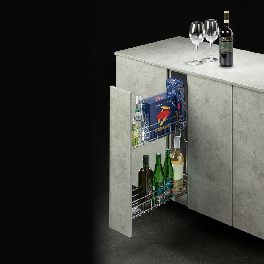 Бутылочница – это высококачественная и функциональная комплектующая для кухонного гарнитура. Предназначена для хранения бутылок и других предметов в кухонных шкафах. Она имеет два уровня, что позволяет эффективно использовать пространство внутри шкафа. Держатель для бутылок оснащен направляющими полного выдвижения с доводчиком, которые обеспечивают плавное выдвижение и закрывание ящика. Это удобно при использовании и позволяет легко доставать и убирать предметы, а так же позволяет избежать случайного удара и повреждения посуды. Выдвижная корзина выполнена из прочного материала, который обеспечивает ее долговечность и надежность. Она имеет боковое крепление и легко монтируется на левую стенку шкафа. Держатель для бутылок имеет возможность 3D-регулировки - широкий диапазон регулировки положения фасада, без использования инструментов, которое позволяет избежать щелей и перекосов. Бутылочница - отличное решение для организации пространства в шкафах и удобного хранения бутылок и других предметов.