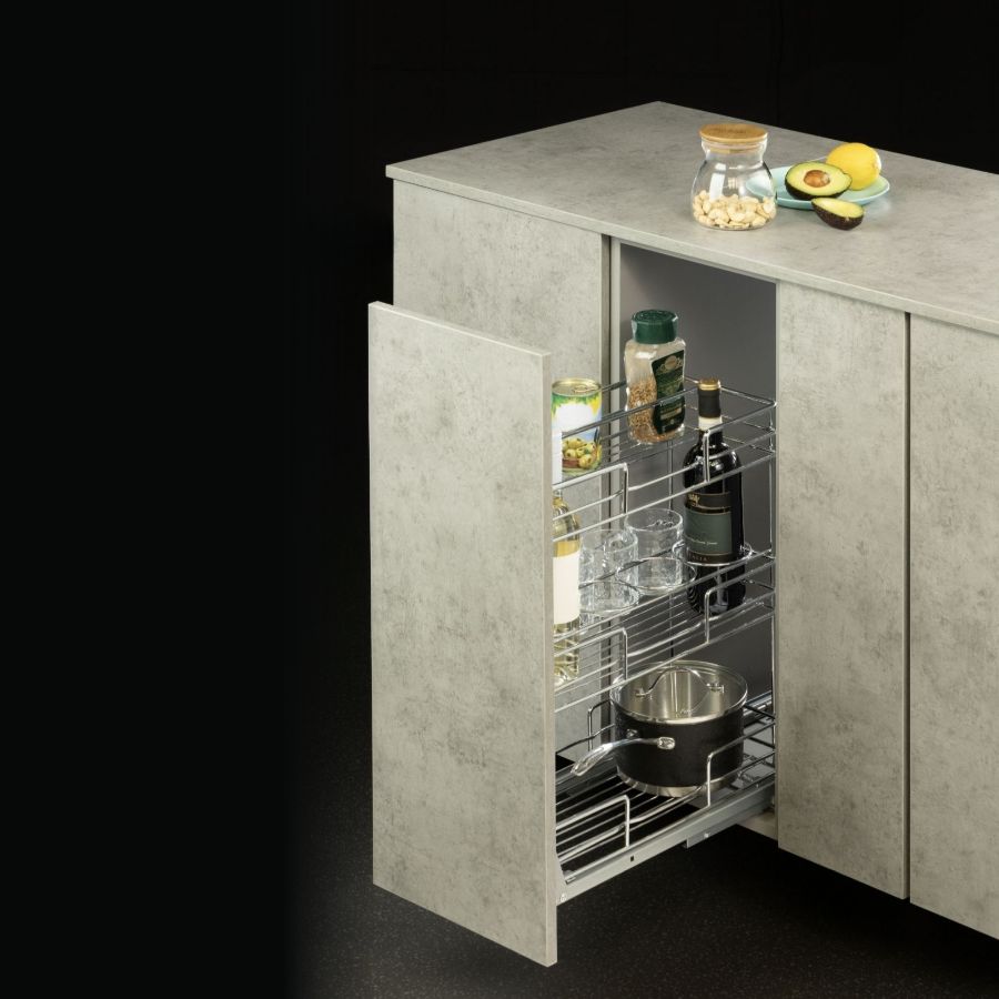 Бутылочница – это высококачественная и функциональная комплектующая для кухонного гарнитура. Предназначена для хранения бутылок и других предметов в кухонных шкафах. Она имеет три уровня, что позволяет эффективно использовать пространство внутри шкафа. Держатель для бутылок оснащен направляющими полного выдвижения с доводчиком, которые обеспечивают плавное выдвижение и закрывание ящика. Это удобно при использовании и позволяет легко доставать и убирать предметы, а так же позволяет избежать случайного удара и повреждения посуды. Выдвижная корзина выполнена из прочного материала, который обеспечивает ее долговечность и надежность. Она имеет нижнее крепление и легко монтируется в шкаф. Держатель для бутылок имеет возможность 3D-регулировки - широкий диапазон регулировки положения фасада, без использования инструментов, которое позволяет избежать щелей и перекосов. Бутылочница - отличное решение для организации пространства в шкафах и удобного хранения бутылок и других предметов.