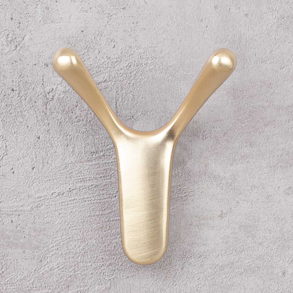 Крючок ГЕРМЕС двухрожковый в цвете "золото браш" — элегантность и надежность в каждом элементе