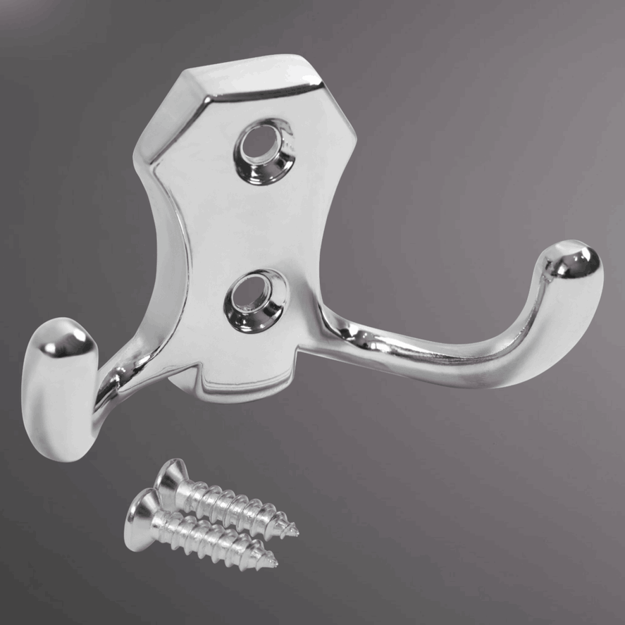 Крючок РОМБО двухрожковый в глянцевом хроме — чистота линий и надёжность