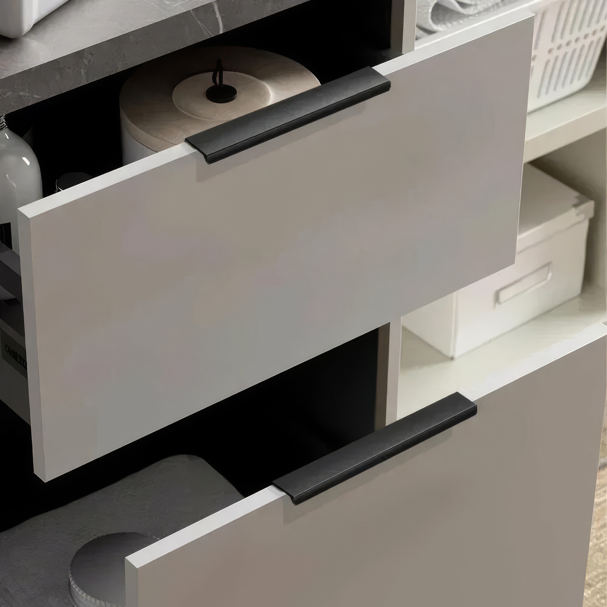 - Гибкая ориентация — горизонтальная и вертикальная: Ручки можно монтировать как вдоль, так и поперёк ящика. Это открывает возможности для креативного дизайна: вертикальные ручки на высоких шкафах создают ощущение вытянутости, горизонтальные — визуально расширяют пространство. Можно комбинировать разные направления в одном интерьере для динамики.