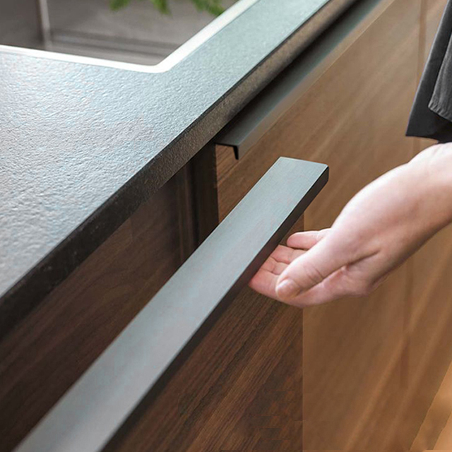- Широкий размерный ряд — от 50 до 1000 мм: Возможность подбора под любой тип мебели — от узких буфетных ящиков до широких шкафов-купе. Это позволяет создавать визуально сбалансированные композиции, где ручка становится естественным продолжением линии фасада, а не отдельным акцентом.