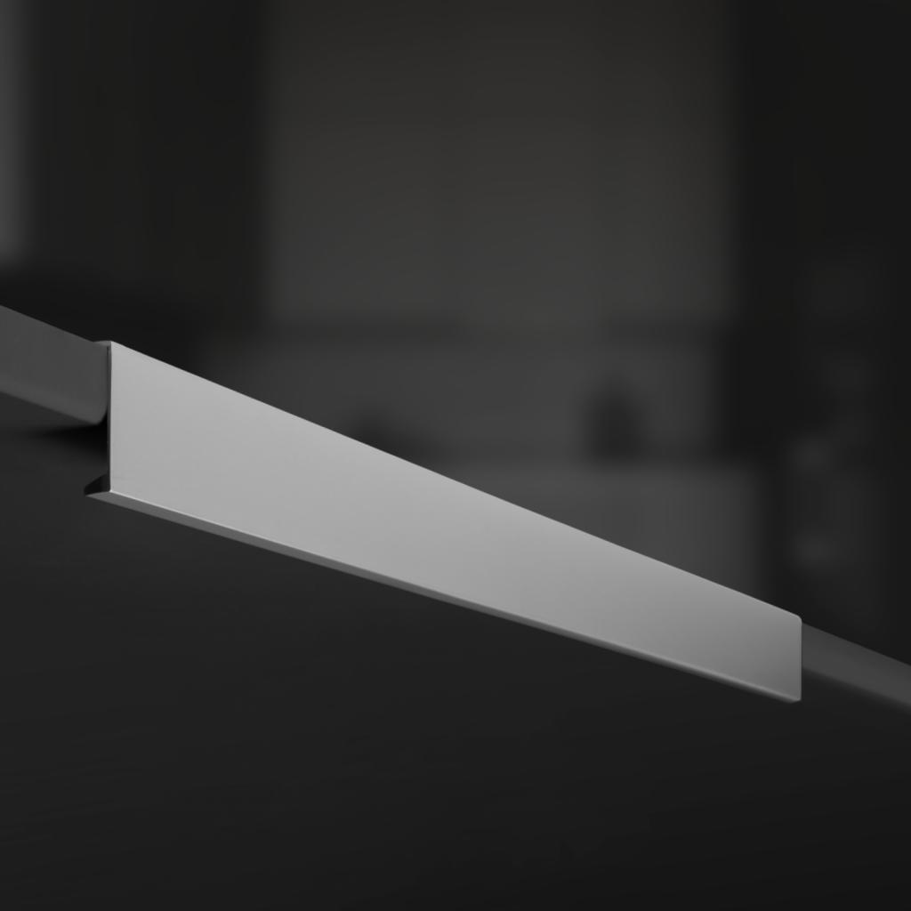 - Широкий размерный ряд — от 50 до 1000 мм: Возможность подбора под любой тип мебели — от узких буфетных ящиков до широких шкафов-купе. Это позволяет создавать визуально сбалансированные композиции, где ручка становится естественным продолжением линии фасада, а не отдельным акцентом.