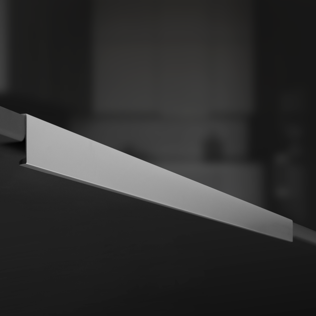 - Широкий размерный ряд — от 50 до 1000 мм: Возможность подбора под любой тип мебели — от узких буфетных ящиков до широких шкафов-купе. Это позволяет создавать визуально сбалансированные композиции, где ручка становится естественным продолжением линии фасада, а не отдельным акцентом.
