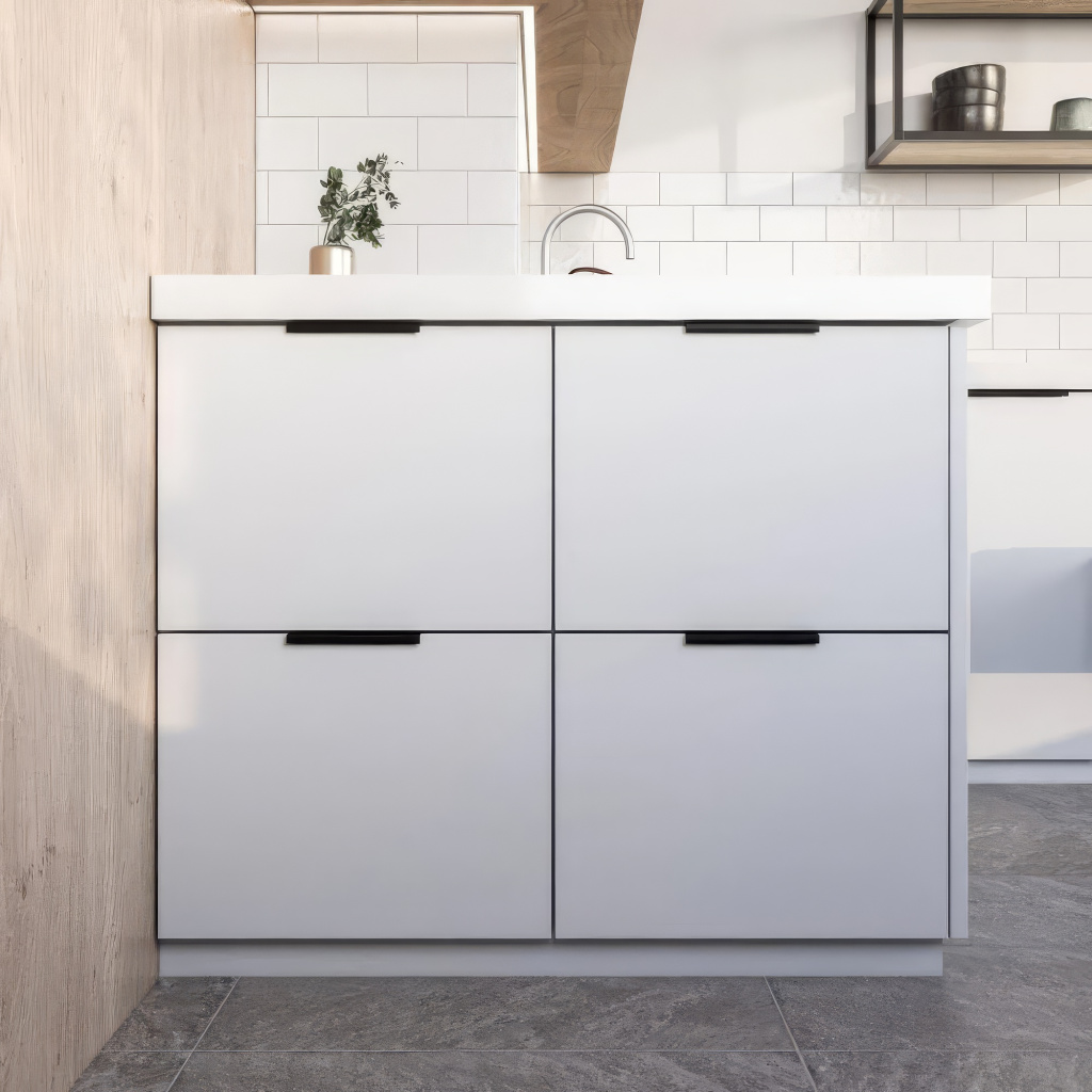 - Широкий размерный ряд — от 50 до 1000 мм: Возможность подбора под любой тип мебели — от узких буфетных ящиков до широких шкафов-купе. Это позволяет создавать визуально сбалансированные композиции, где ручка становится естественным продолжением линии фасада, а не отдельным акцентом.