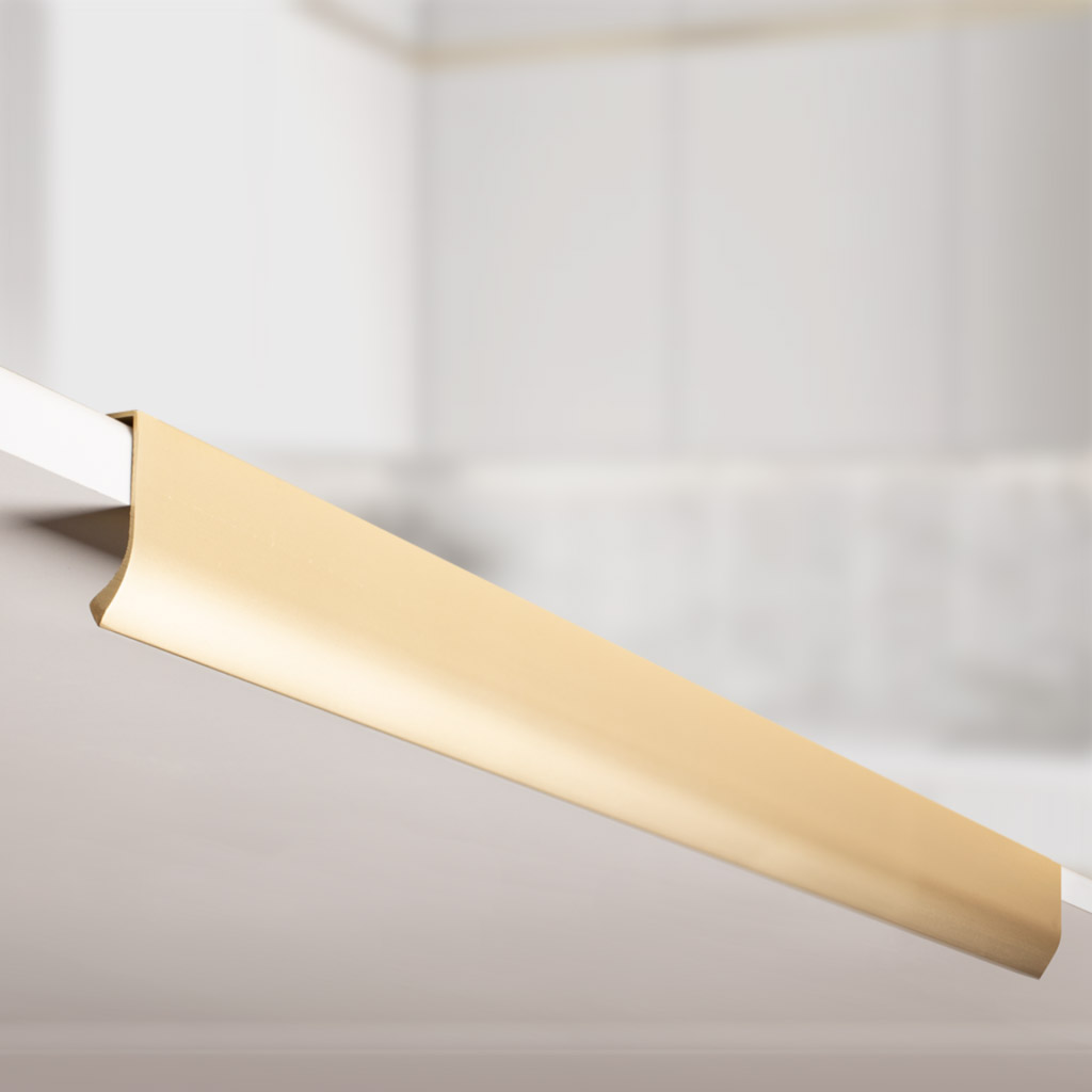 Профильная ручка в золоте браш из алюминия — это не просто элемент фурнитуры, а продуманный дизайн-решение для тех, кто стремится к гармонии между функцией и эстетикой. Лаконичная форма и скрытый монтаж делают её незаметной частью интерьера — той самой деталью, которую замечают не сразу, но помнят навсегда.