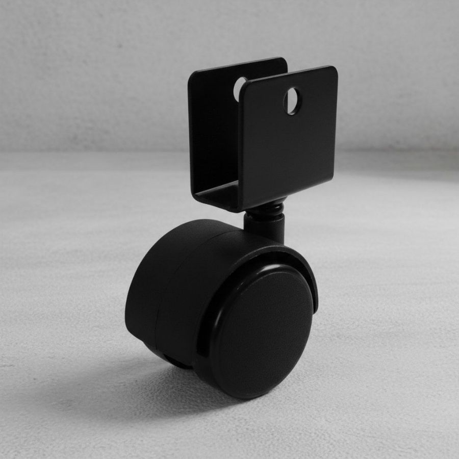Мебельное колесо с скобой - незаменимый аксессуар для журнальных столиков, выкатных тумб и другой аппаратуры. Это поворотное колесо облегчает передвижение мебели по комнате без каких-либо усилий.