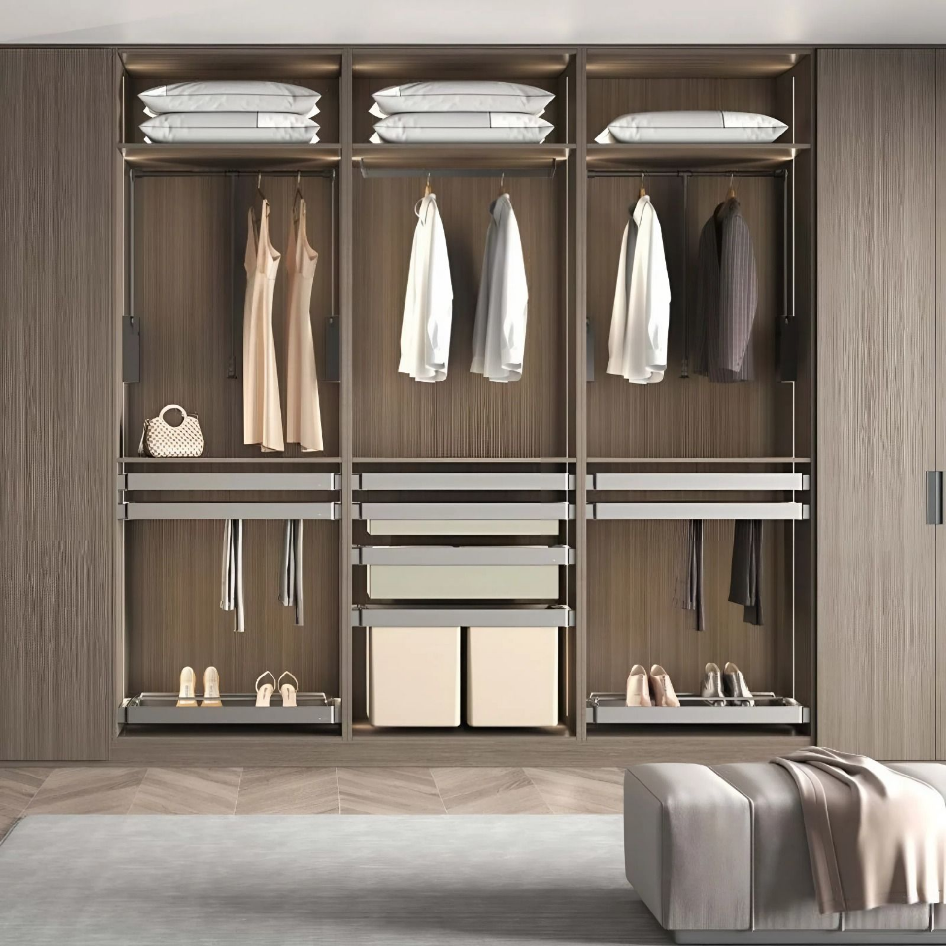 Грамотная организация внутреннего пространства шкафа — ключ к удобству и функциональности хранения. Одним из самых продуманных решений в этой области стали выдвижные полки системы UNIHOPPER.