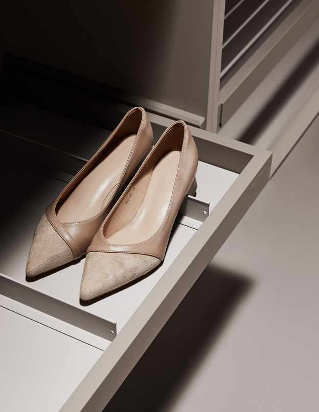 Полное выдвижение обеспечивает удобный доступ ко всей обуви, оптимизируя пространство гардероба.