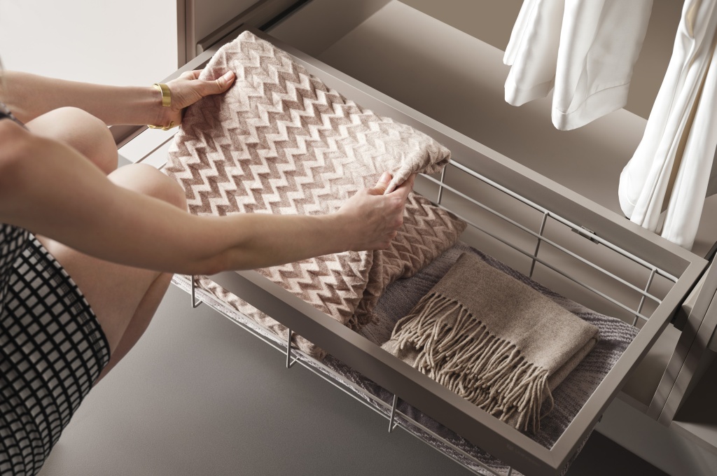 Полное выдвижение обеспечивает легкий доступ ко всей одежде и белью, оптимизируя пространство гардероба.