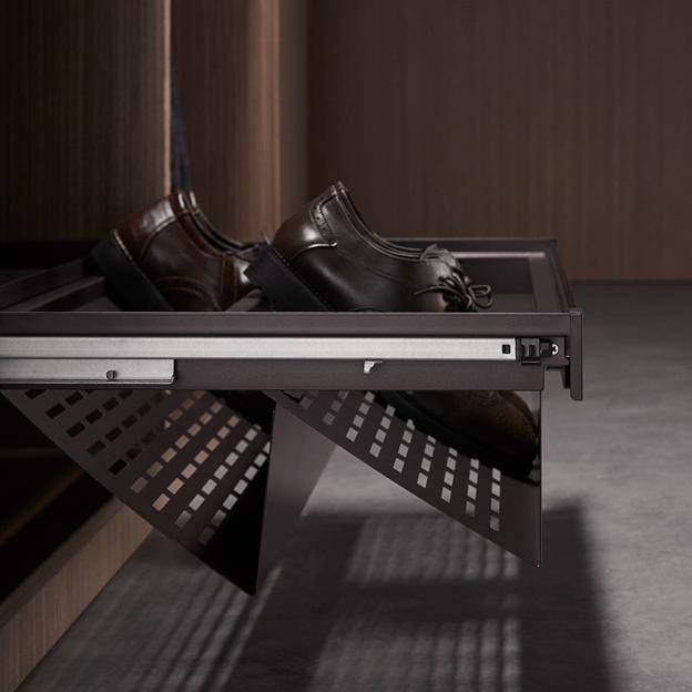 Выдвижная полка для обуви Unihopper GLASS NAKA — это стильное и функциональное решение для вашего гардероба. Сталь и тонированное стекло гармонично сочетаются, добавляя элегантности вашему пространству.