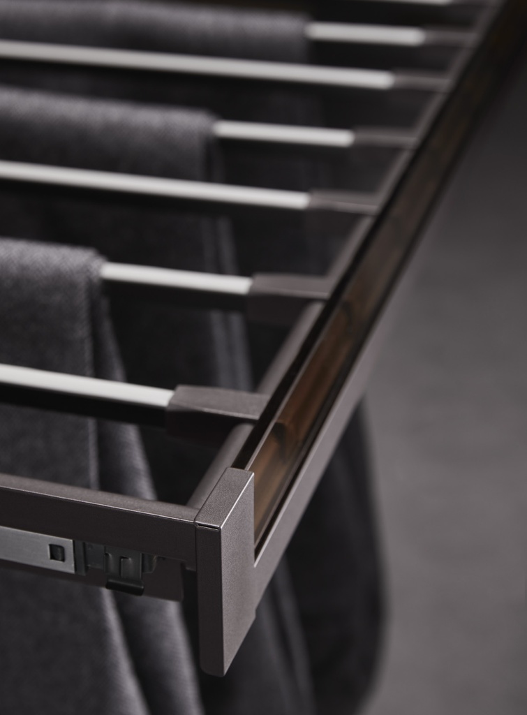 Выдвижная полка для брюк Unihopper — это идеальное решение для делового гардероба, сочетающее строгий и лаконичный дизайн с функциональностью. Эта полка обеспечивает удобство и надежность в хранении брюк.