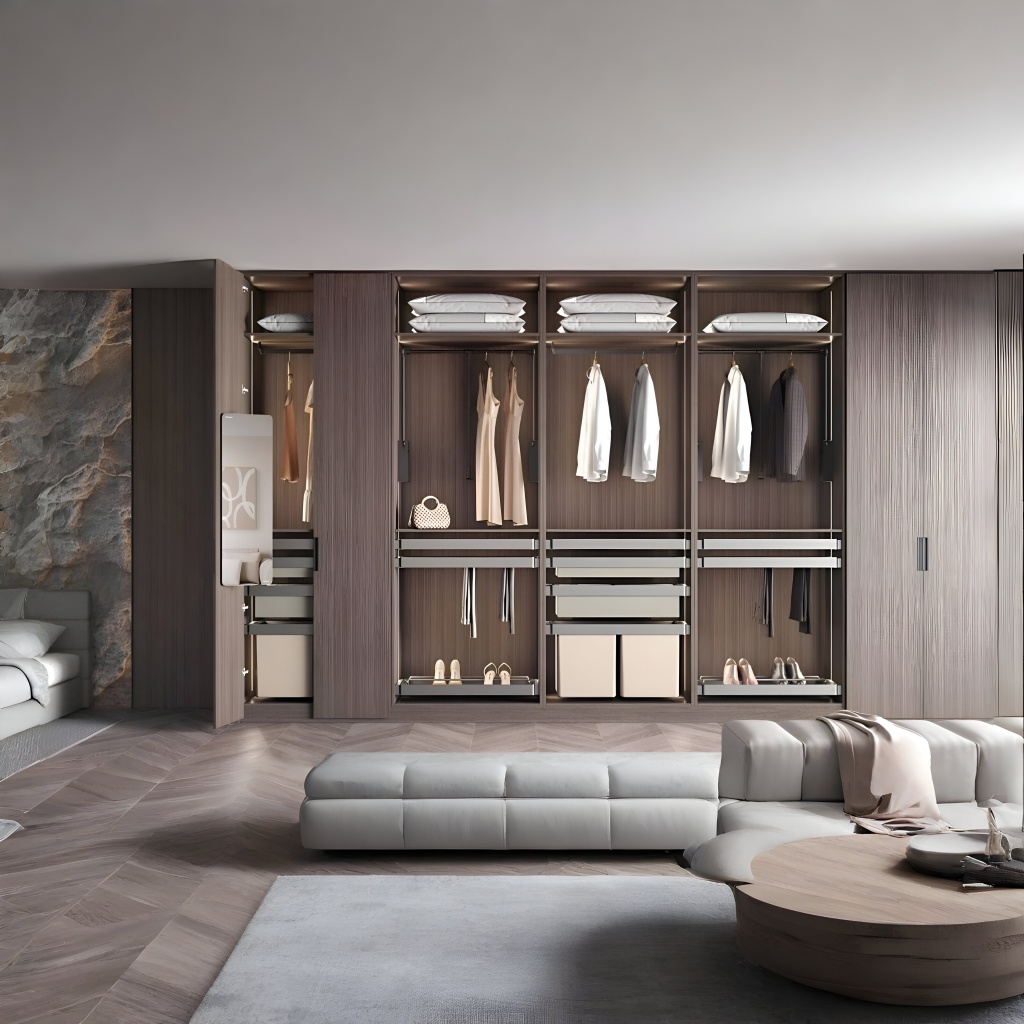 - Универсальность. Подходит для различных типов шкафов и планировок гардеробных.
