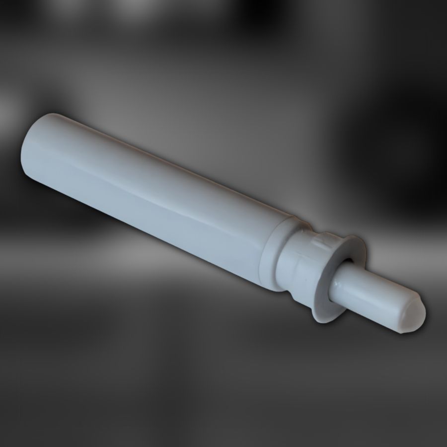 Амортизаторы мебельные газовые состоят из поршня и цилиндра, наполненного смазкой и воздухом. Служат для гашения удара фасада и смягчения закрывания. Они устанавливаются в верхнюю горизонтальную часть корпуса на расстояние, максимально удаленное от петель. Существует несколько вариантов установки газового амортизатора: его можно просто врезать в торец ДСП, просверлив отверстие диаметром 10 мм., или использовать накладной, одинарный или двойной пластиковый держатель для газового амортизатора.