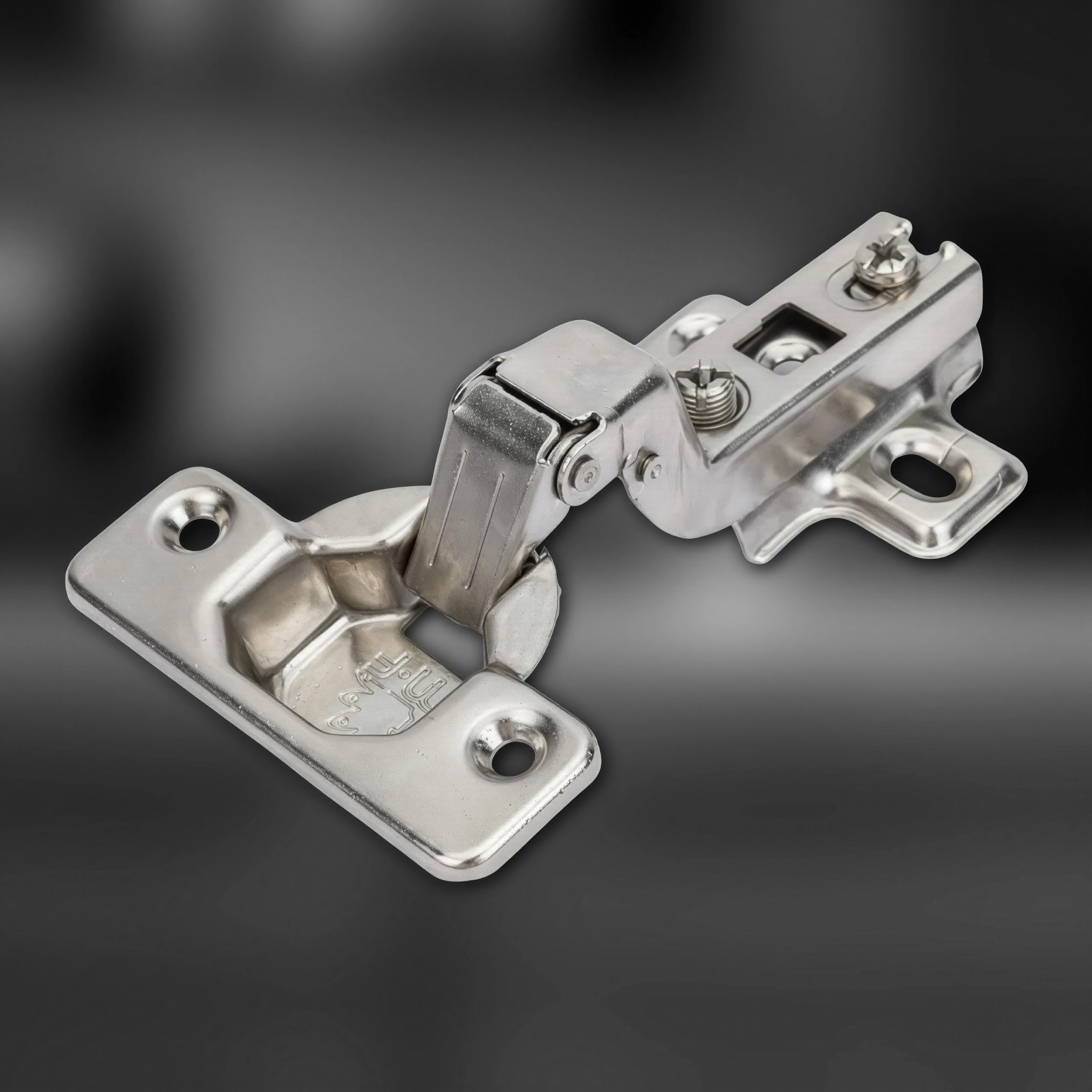 Полунакладные петли оборудованы системой Slide on и оптимально подойдут для мебели класса стандарт.