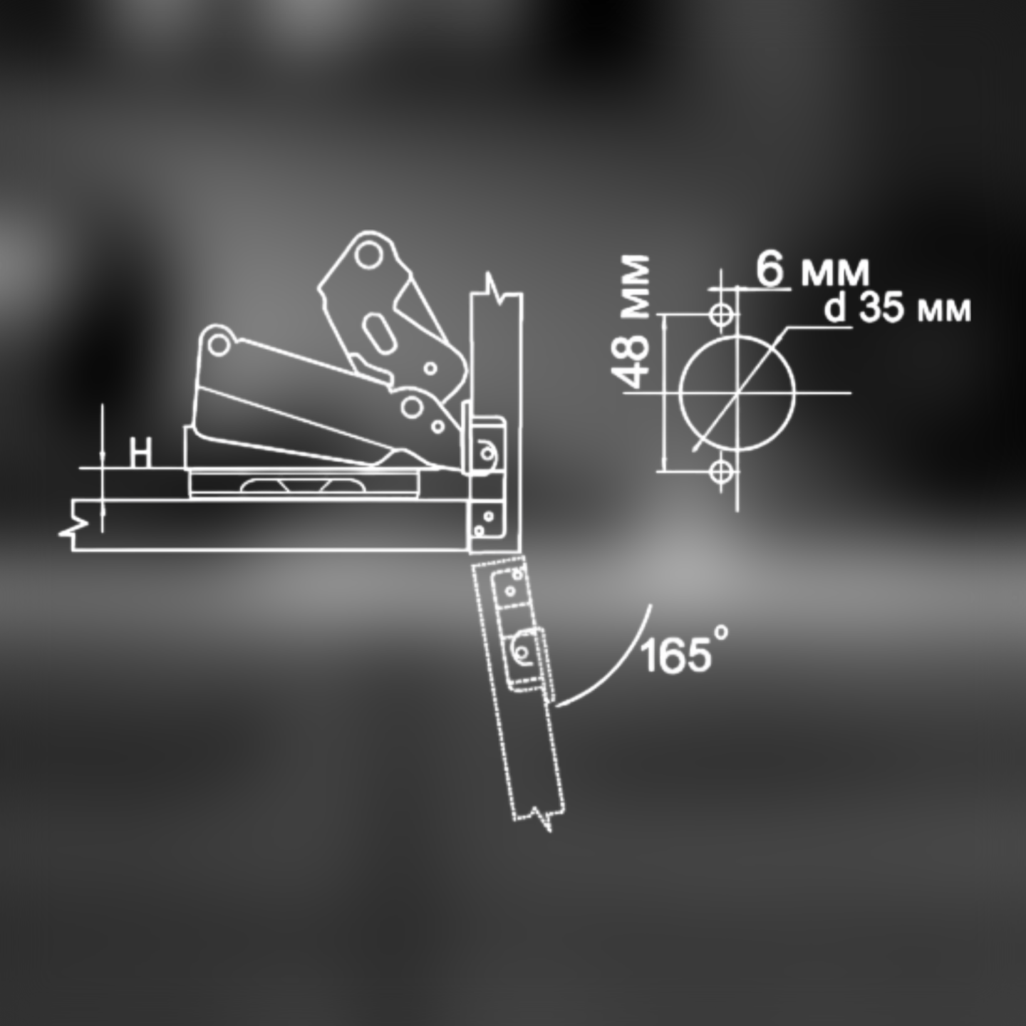 Мебельные петли 165-175 градусов, они же петли крокодилы или трансформеры. Называются они так из за своего "внушительного" внешнего вида. Такая мебельная петля нужна, когда необходимо обеспечить полный доступ в шкаф и чтобы фасады полностью открывались. Крепятся угловые петли под прямым углом, но открываются при этом на 165-175 градусов. Петли 165 градусов MF имеют систему монтажа Slide on и оптимально подходят для производства кухонь эконом класса и класса стандарт.