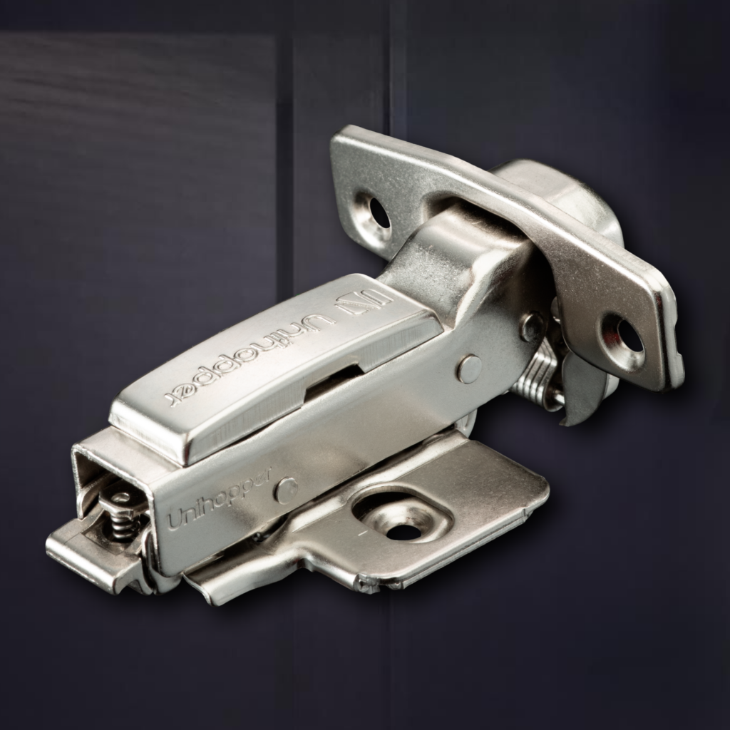 3D петля UNIHOPPER SETTON полунакладная, оснащается специальным плечевым изгибом, который позволяет дверям закрывать только половину торца боковой стенки. Полунакладные мебельные петли станут оптимальным вариантом для сборки и установки конструкций, оснащенных смежными створками (кухонные гарнитуры, состоящие из нескольких секций, трехстворчатые шкафы). Полунакладные петли обеспечивают надежное и удобное функционирование обеих дверей.