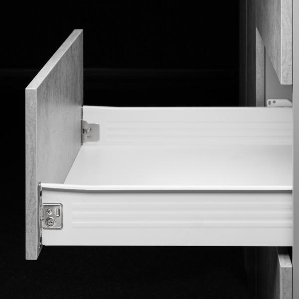 Металлобоксы MF совместимы с фасадами шириной до 600 мм — это позволяет использовать их в самых разных типах мебели: от узких тумб до широких кухонных модулей и гардеробных систем.