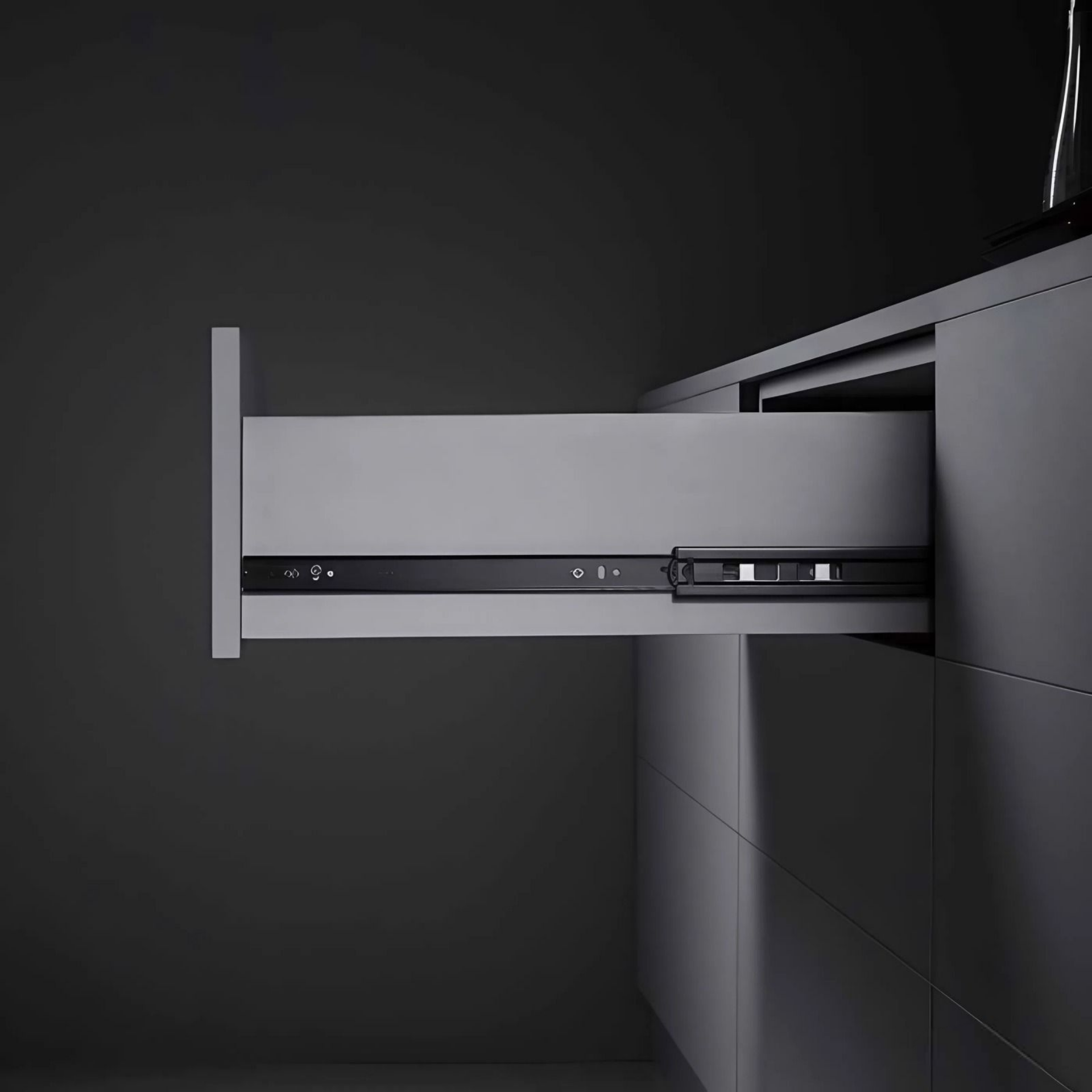 Современное решение для минималистичных интерьеров. Достаточно лёгкого прикосновения к фасаду — и ящик плавно выдвигается. Нет ручек, нет визуального шума — только чистые линии и интуитивное управление. Механизм срабатывает даже при частичном выдвижении — система «запоминает» движение для корректного закрывания.