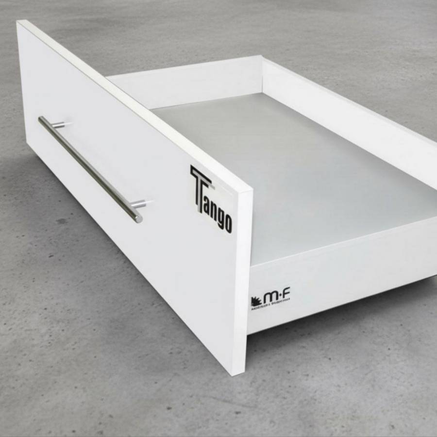 TANGO BOX 400мм.— это выдвижной механизм европейского качества по умеренной цене. Максимальная динамическая нагрузка до 40 кг на ящик. Механизмы TANGO рассчитаны на 60 000 циклов мягкого закрывания. Благородный белый матовый цвет этого ящика будет хорошо смотреться в любом кухонном гарнитуре.