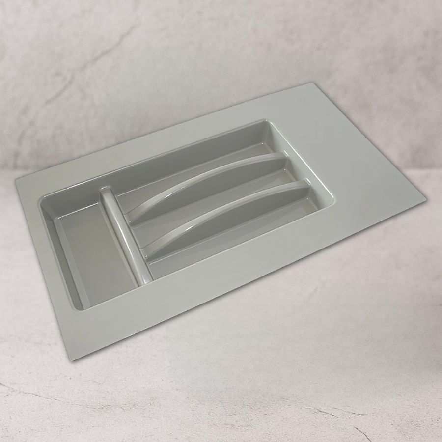 Лотки для столовых приборов служат органайзерами для хранения кухонной утвари, с ними все будет всегда под рукой. Помимо этого лотки предотвращают выдвижные ящики от попадания влаги. Емкости для столовых приборов от итальянской компании FGV прошли европейскую сертификацию, изготовлены из пищевого пластика, и не выделяют вредных химических веществ. Эти лотки универсальны, легко подрезаются и подходят для любого выдвижного ящика, будь то стандартный металобокс, ящик с доводчиком, или простой ящик из ЛДСП. при помощи соединительного профиля можно составить из нескольких лотков один.