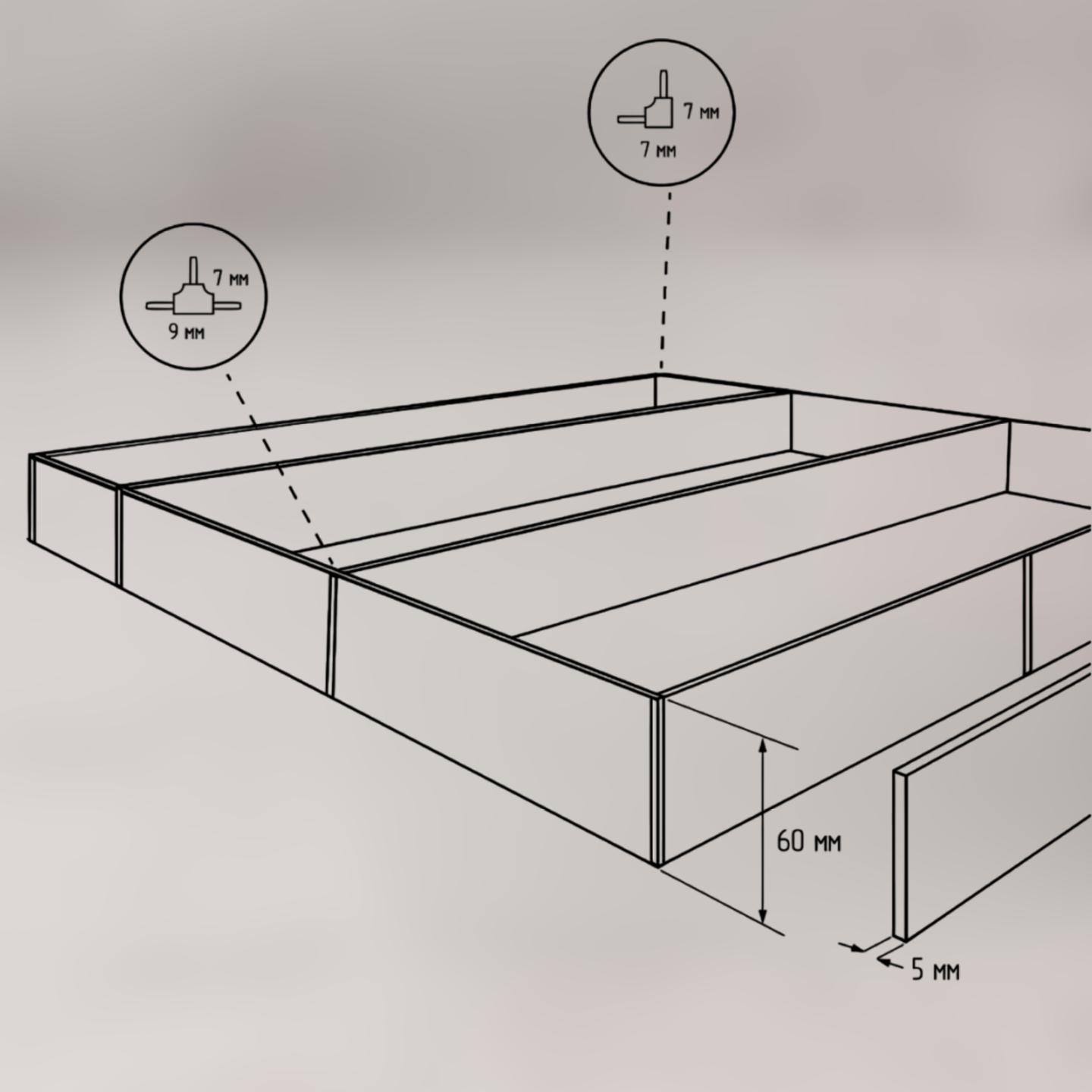 Профиль разделительный для организации кухонного ящика белый 60 мм х 2 м