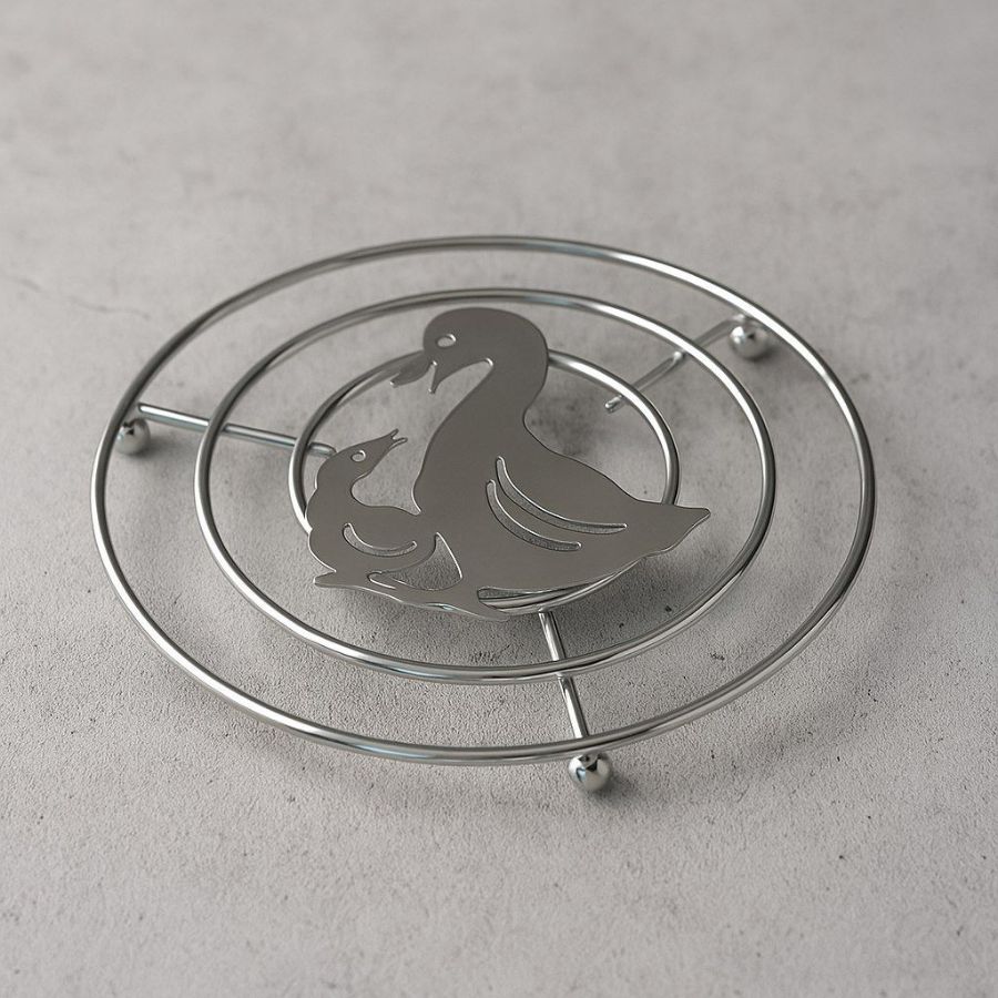 Подставка под горячее "Утка с утенком" от ALBA - это незаменимый помощник на вашей кухне. Изготовленная из хромированной стали, подставка обеспечивает надежную защиту поверхности стола от повреждений, вызванных высокотемпературным воздействием.