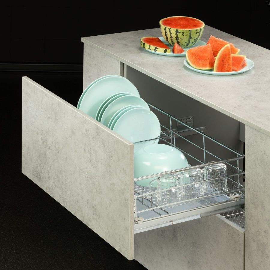 Кроме того, посудосушитель оснащен высококачественными направляющими скрытого типа с синхронизатором, что обеспечивает плавное и бесшумное выдвижение и задвижение конструкции. Такая система направляющих гарантирует долговечность и надежность эксплуатации, а также удобство использования, позволяя легко и без усилий доставать посуду. В совокупности все эти характеристики делают посудосушитель в нижнюю базу не только практичным, но и эстетически привлекательным решением для любой современной кухни.