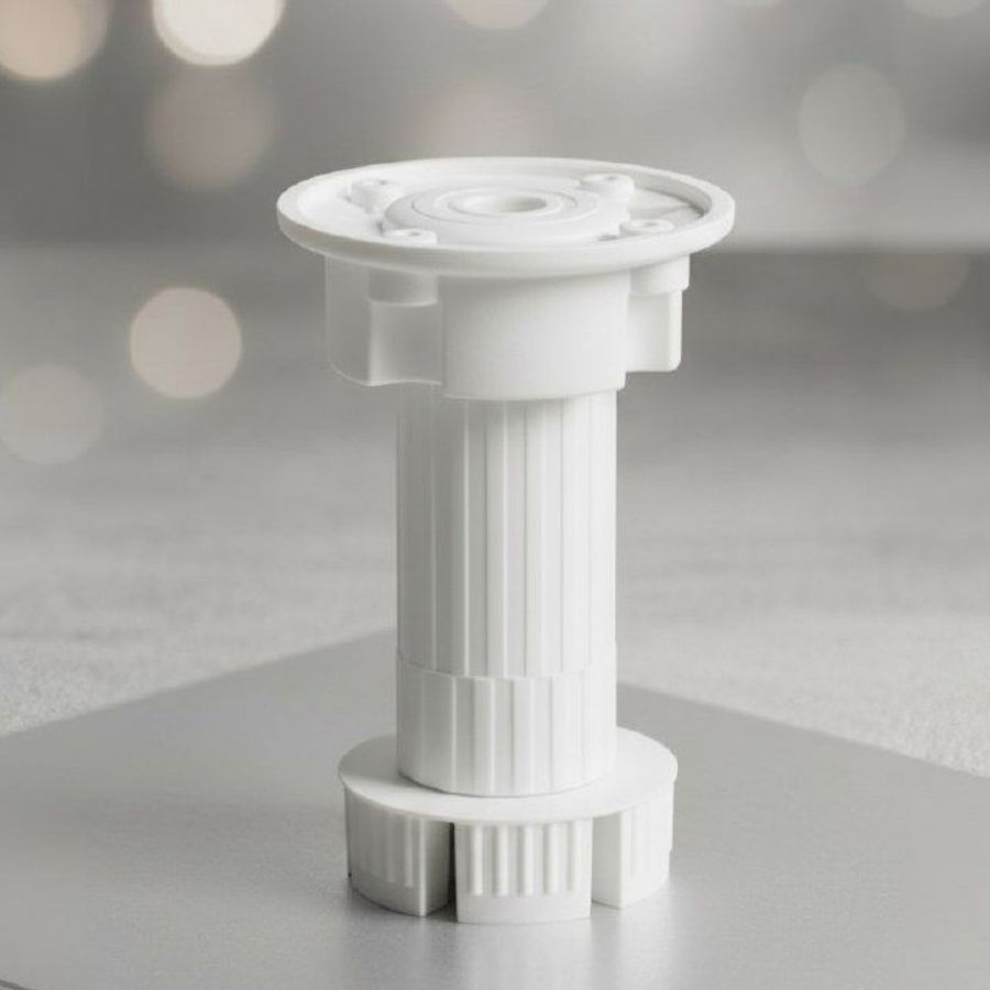 Данная опора имеет регулируемую высоту от 100 до 125 мм, что позволяет подстроить мебель под нужные параметры. Она разборная, что облегчает ее установку и снятие при необходимости. Белый цвет опоры придает ей эстетичный и современный вид, который легко сочетается с различными стилями интерьера.