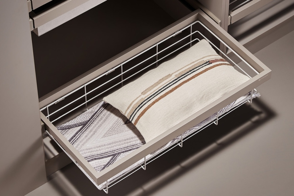 Полное выдвижение обеспечивает легкий доступ ко всей одежде и белью, оптимизируя пространство гардероба.