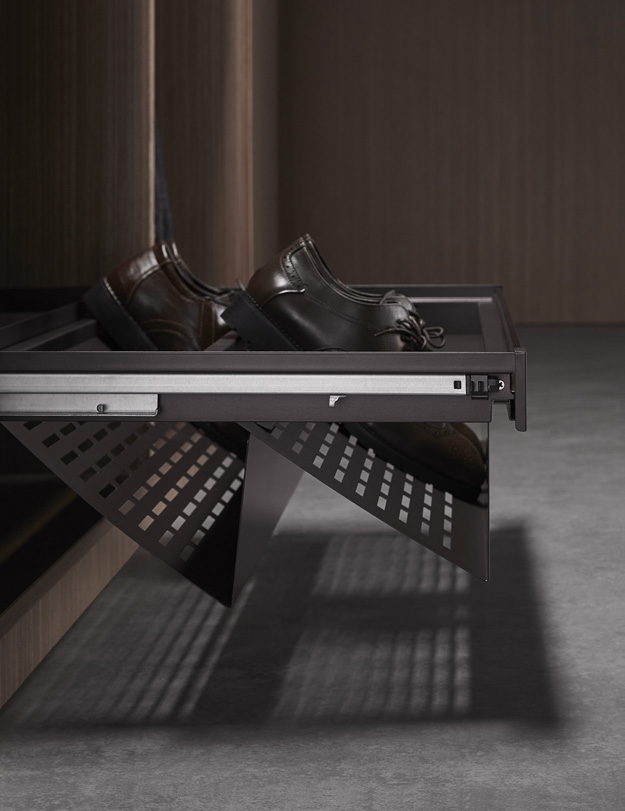 Выдвижная полка для обуви Unihopper GLASS NAKA — это стильное и функциональное решение для вашего гардероба. Сталь и тонированное стекло гармонично сочетаются, добавляя элегантности вашему пространству.