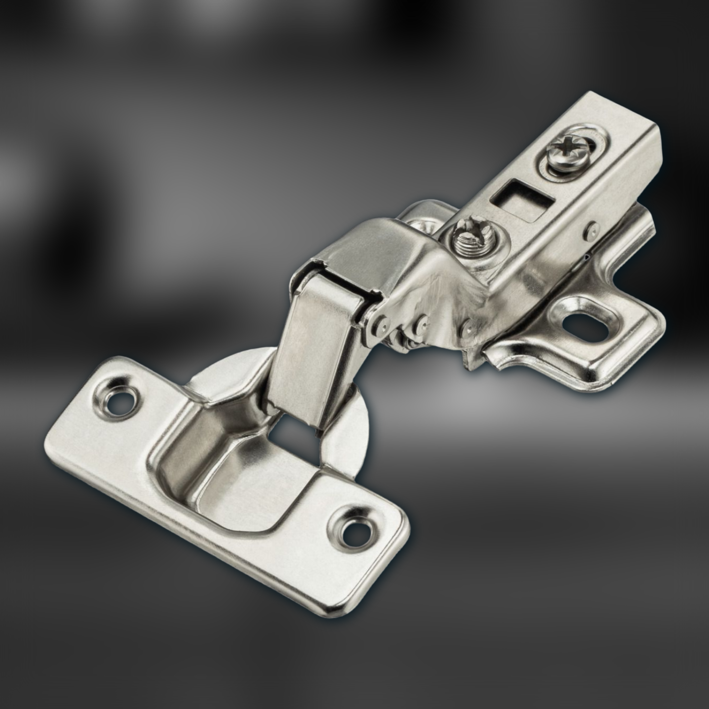 Вкладные петли представляют собой современное решение для установки дверей внутри корпуса, при этом полностью виден торец боковой стенки. Внешне они схожи с полунакладными петлями, однако имеют еще более изогнутое плечо – так при открывании у дверей возникает меньшее сопротивление. Данные мебельные петли с доводчиком имеют систему быстрого монтажа Clip on.