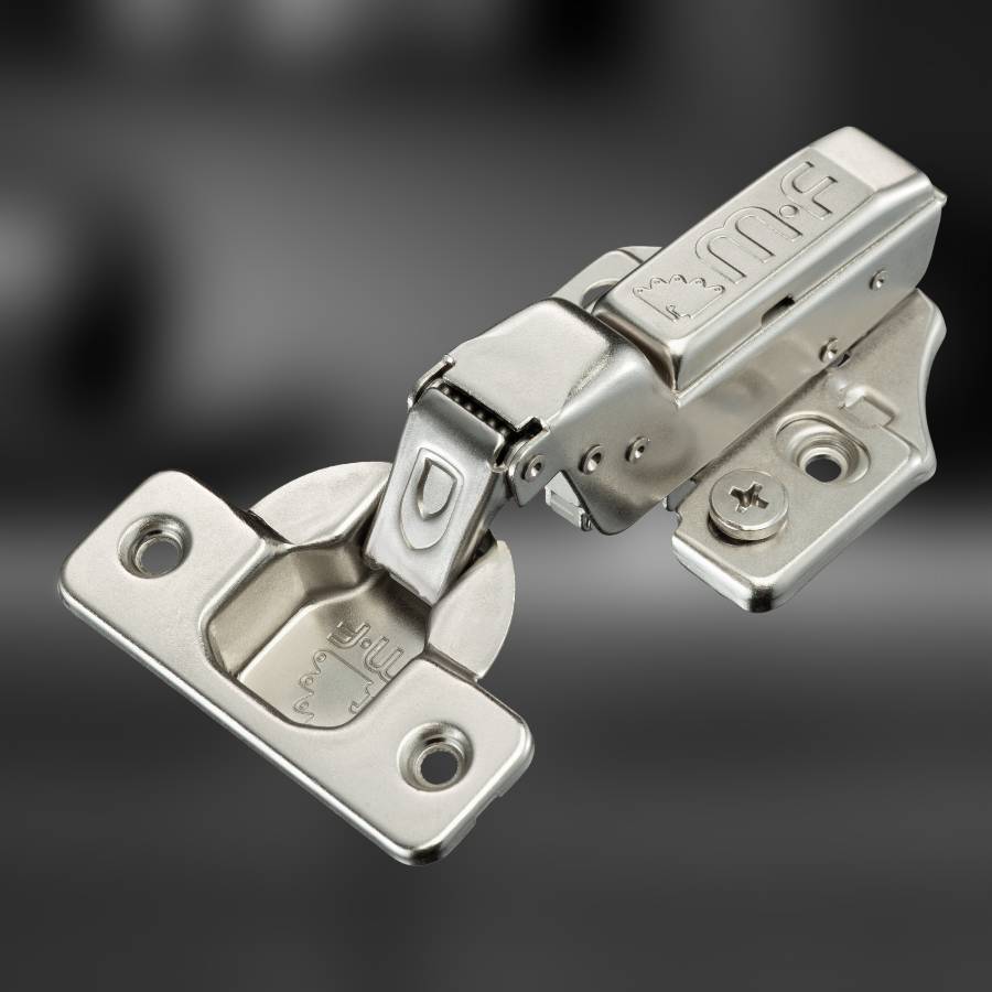 Петля MF ПРИМА ТОП (PRIMA TOP) с доводчиком, вкладная - это современное решение для установки дверей внутри корпуса, при котором торец боковой стенки виден полностью. Изогнутое плечо мебельной петли снижает сопротивление при открывании дверей. Основное преимущество вкладных петель заключается в их способности обеспечивать скрытое размещение дверей внутри мебельного корпуса.