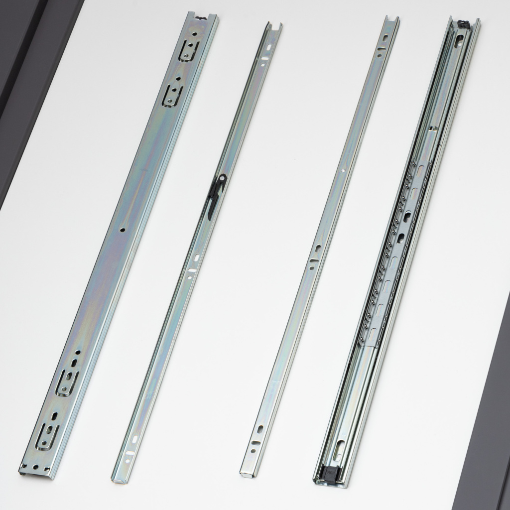 Направляющие шариковые полного выдвижения H 35 мм длиной 600 мм производителя MF являются оптимальной альтернативой роликовым направляющим. Их телескопический механизм обеспечивает полный доступ к пространству ящика а их ход мягкий и бесшумный. Телескопические направляющие H35 выдерживают нагрузку до 17 кг. Изготавливаются из холоднокатаной стали повышенной упругости.