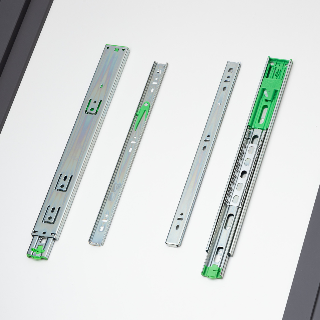 Направляющие шариковые Push to open полного выдвижения 45 мм длиной 400 мм от итальянской компании FGV, изготовленные из стали толщиной 1.2 мм, представляют собой надежное и функциональное решение для мебельного производства. Рассчитанные на нагрузку до 35 кг, эти направляющие позволяют создавать элегантную мебель без ручек, где ящик открывается легким нажатием. Телескопический механизм обеспечивает полный доступ ко всему содержимому ящика, а плавный и бесшумный ход гарантирует комфортное использование. Направляющие Push to open FGV соответствуют высоким европейским стандартам качества, что подтверждается сертификатом, гарантирующим безотказную работу в течение 60 000 циклов открывания.