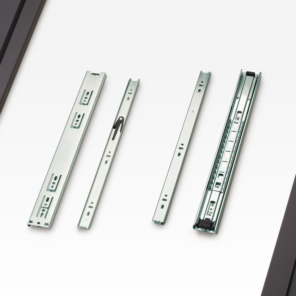 Шариковые направляющие Unihopper без доводчика — надежное решение для современной мебели, сочетающее прочность, долговечность и простоту установки.