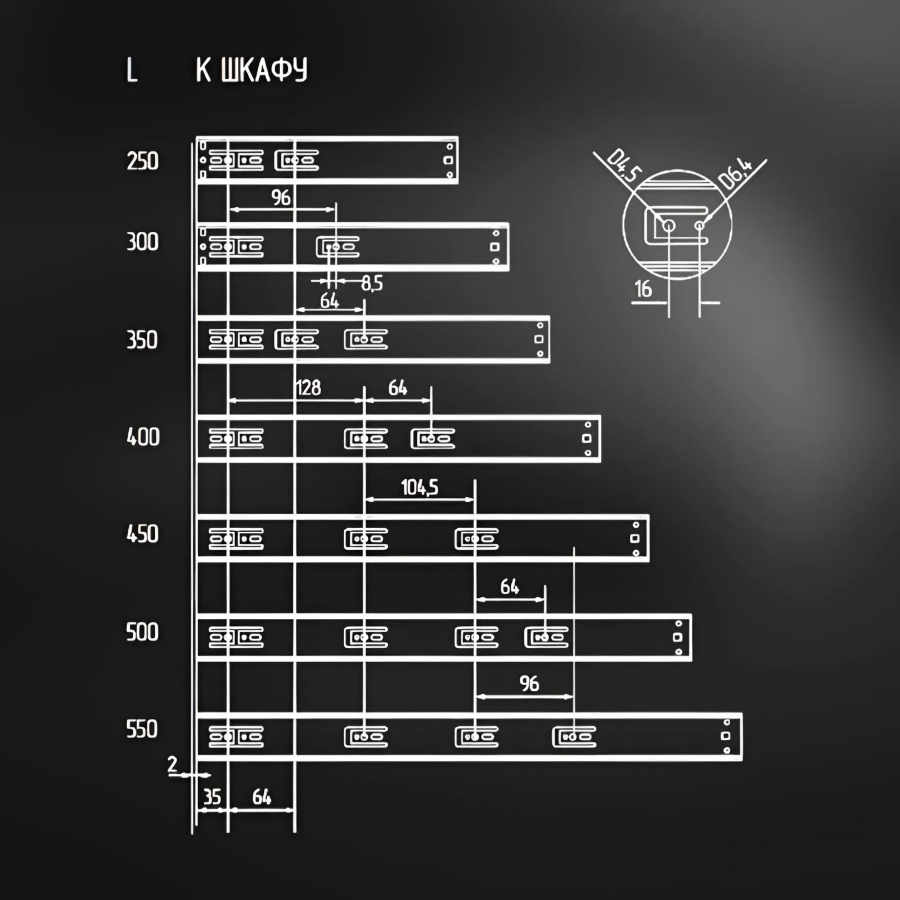 Длина направляющих (мм)