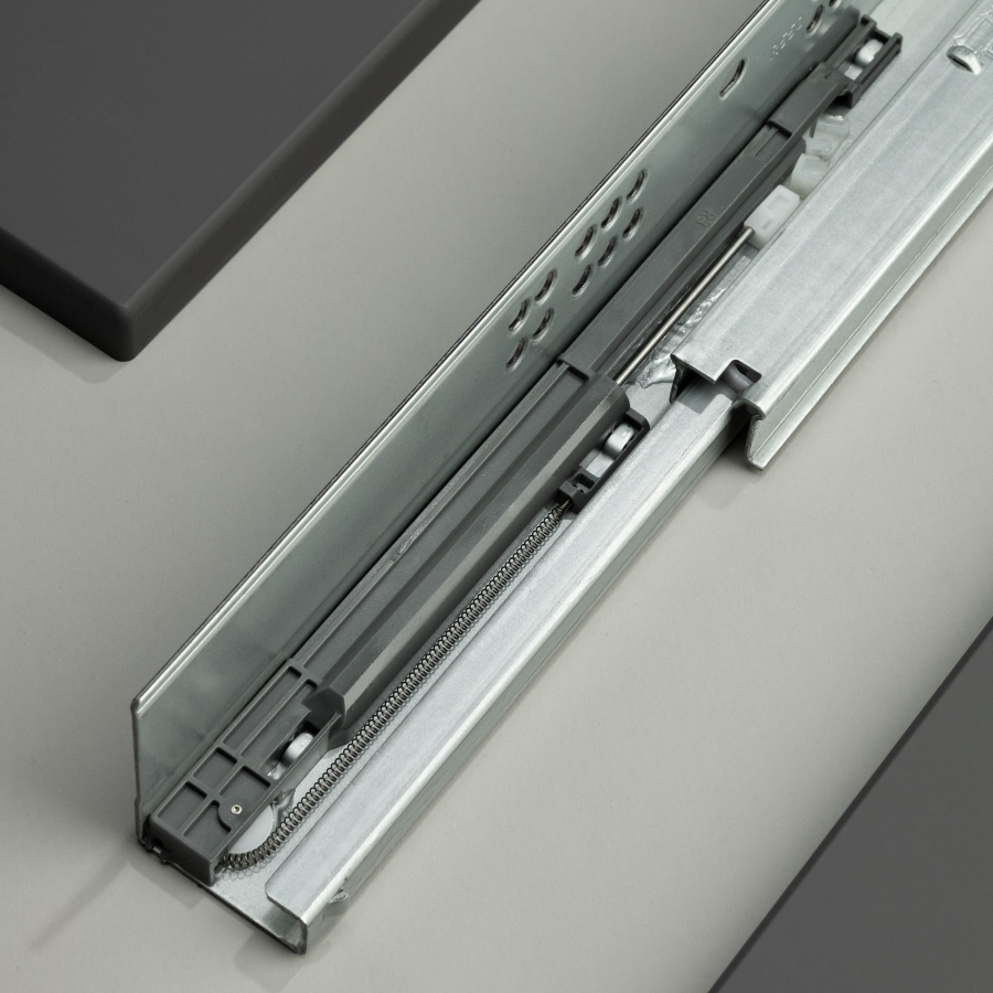 Мебельные направляющие скрытого монтажа UNIHOPPER — это высокотехнологичное решение для производителей мебели, обеспечивающее надежность и удобство в использовании. Эти направляющие оснащены высококачественным доводчиком, который активируется с 53 мм, гарантируя плавное и бесшумное закрывание.