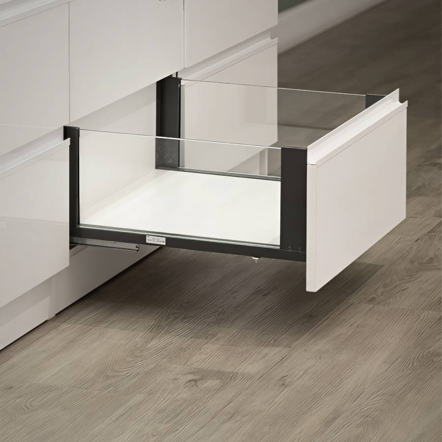 Комплект выдвижного ящика TANGO SLIM 450 мм со стеклом впишется в любой самый современный интерьер. Дизайн ящиков легкий и воздушный.