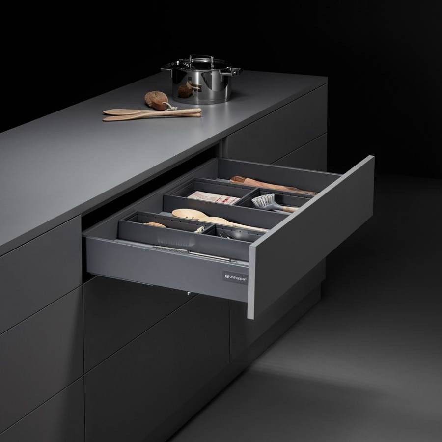 UNIHOPPER MAGIC BOX - это инновационная система выдвижения для стильной мебели с тонкими боковинами, которые позволяют максимально использовать внутренний объем ящика. Современный и лаконичный дизайн соответствует трендам европейской мебели высокого класса.