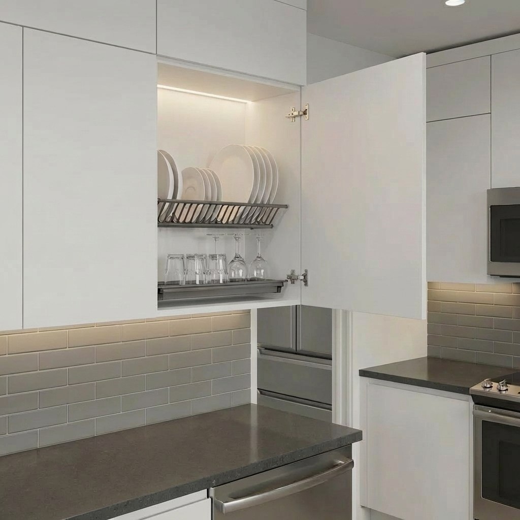 Для тех, кто хочет избавиться от мокрых поверхностей на столе, сэкономить место и добавить в кухню нотку утончённой стилистики. Для владельцев современных интерьеров, ценящих практичность без компромиссов.